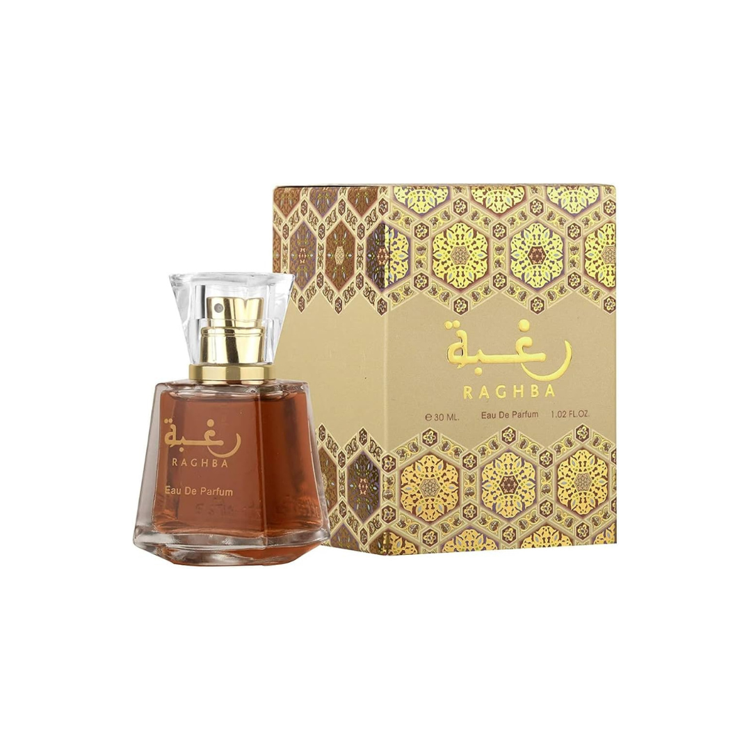 Experience the rich flavors of the Middle East with Raghba Eau De Parfum by Lattafa. The warm and inviting aroma of vanilla is complemented by the enchanting blend of oud, sandalwood, and amber, creating an alluring incense base. This fragrance offers exceptional performance and is a must-have for any luxury collection. With notes of agarwood, saffron, cinnamon, rose, leather, musk, and vanilla, Raghba is a truly elevated experience.