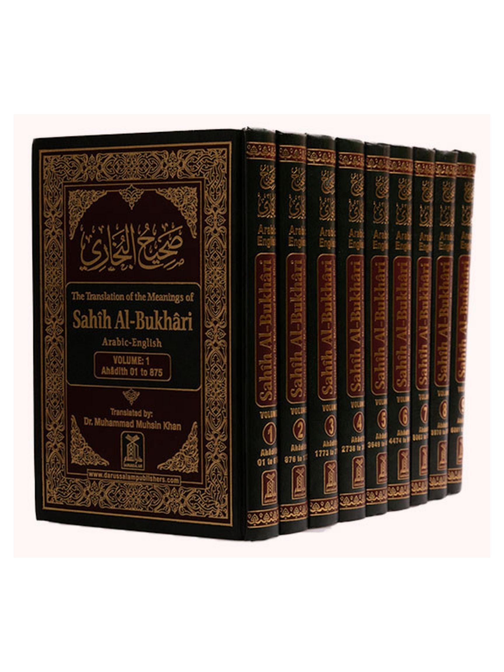Generally regarded as the single most authentic collection of Ahadith, Sahih Al-Bukhari covers almost all aspects of life in providing proper guidance from the messenger of Allah. This 9-Volume Bukhari is the work of over 16 years by Imam Bukhari who before writing any Hadith in this book performed two Rakat prayer of guidance from Allah and when he was sure of the Hadith's authenticity, he wrote it in the book. Tremendous amounts of errors exist in the translations by other translators. To eliminate the problem Dar-us-Salam spent over 3 years in the publication of this book and presented a book which is translated into English in a very easy and simple language, so that all readers can understand it without difficulty. This is the unabridged version consisting of 7563 ahadith (about 4000 pages) which are presented neatly in smaller books format and printed on fine paper. Each book (subtopics in each volume categorized by very broad topics such as the Book of As-Salat) contains many chapters which represent o