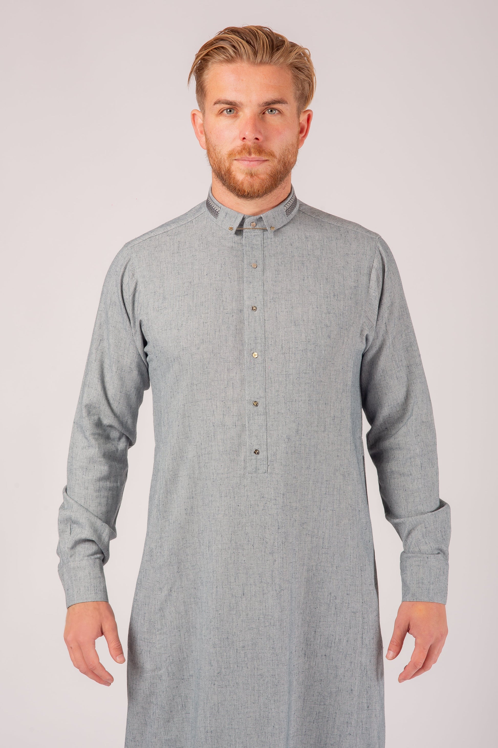 Sterling Grey Thobe – Exquisite Designer Islamic Wear from London