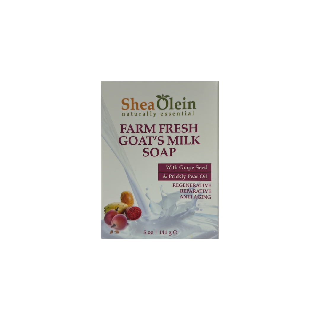 Shea Olein’s certified organic Farm Fresh Goat’s Milk Soap is blended with 100% all-natural Grape Seed and Prickly Pear oils. Goat's Milk contains Vitamin A, Selenium, and other properties that assist in sloughing off dead skin cells to hydrate and brighten skin. Grape Seed contains vitamin E and omega-6 yielding healthy skin, while Prickly Pear contains rich amino acids that stimulate collagen production for faster cell turnover. Together they produce a regenerative anti-aging wonder.