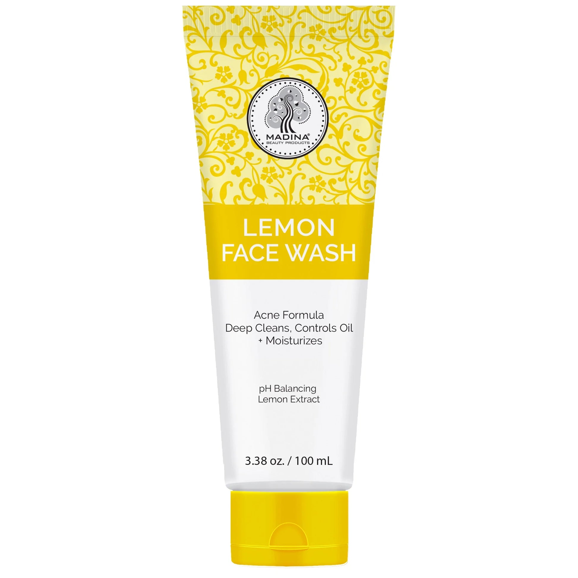 MADINA LEMON FACE WASH Lemon contains anti-bacterial and antimicrobial properties which fight acne causing bacteria. It acts as an exfoliate which removes the dead cells and oil that clog pores resulting in inflammation. Lemon helps balance the skin’s pH level and reduces redness and inflammation caused by acne. This ultra-nourishing formula is infused with soothing aloe vera, Vitamin E and chamomile designed to leave skin feeling clean and refreshed. DIRECTIONS: Wet face with lukewarm water. Apply cleanser to face and neck with a gentle, circular motion. Rinse with lukewarm water and pat dry. Use morning and evening INGREDIENTS: Aqua, Potassium Stearate, Potassium Myristate, Potassium Laurate, Glycerin, Cocamidopropyl Betaine, Cocamide MEA, Citrus Medica Limonium Fruit Extract, Fragrance, Triethanolamine, Methylisothiazolinone, Tocopherol acetate, CI 19140. CAUTION: For external use only. Keep out of reach of children.