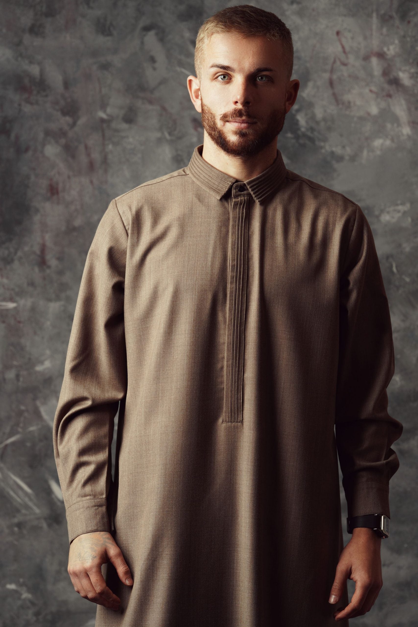 Calm Brown Thobe - Elegant Designer Muslim Wear from London