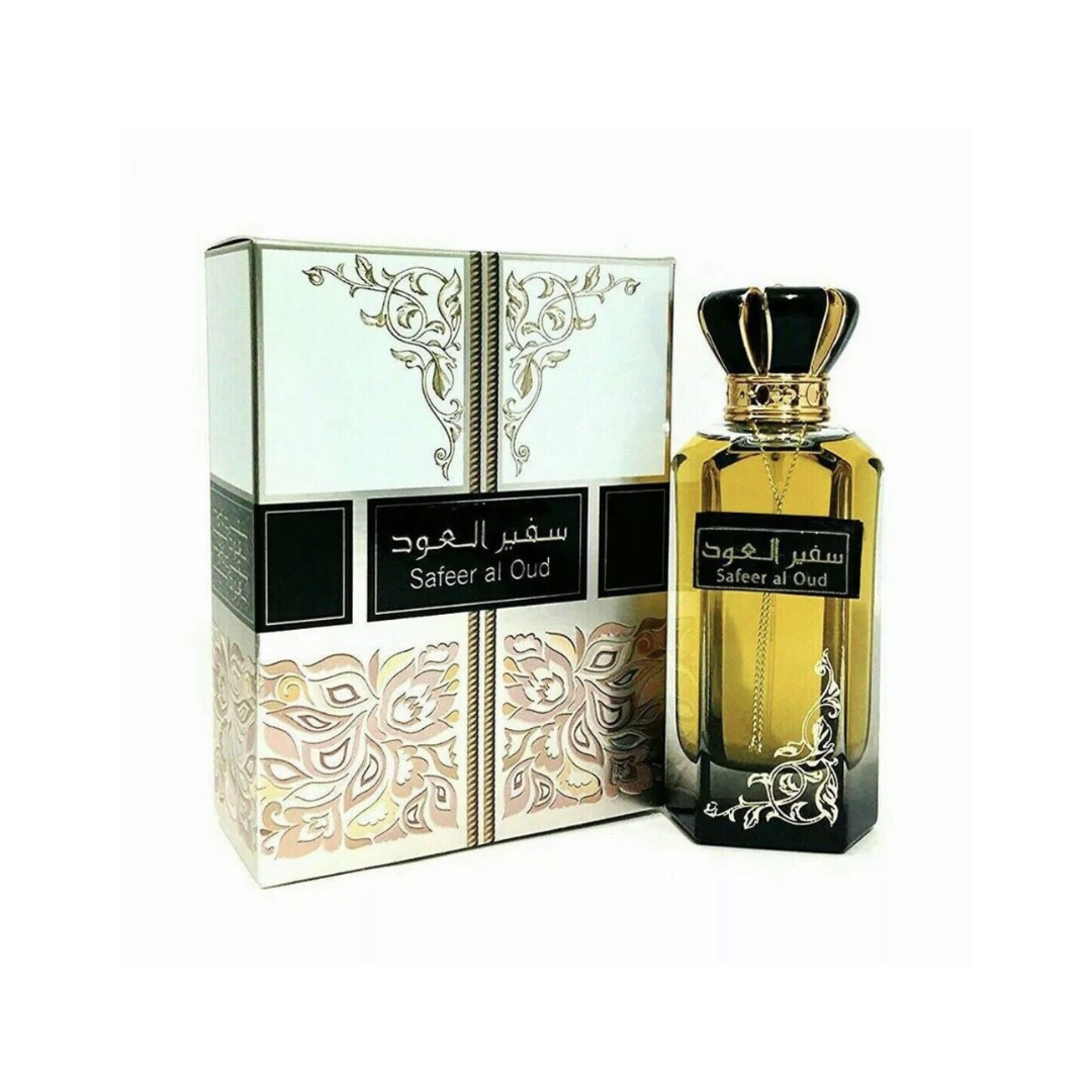 Discover the captivating and luxurious scent of Safeer Al Oud Eau de Parfum by Ard Al Zaafaran. This oriental fragrance combines the richness of oud and the delicate sweetness of roses. The blend of spicy saffron, gujrun balm, and sandalwood creates an alluring scent. With notes of incense, cedar, and guaiac wood, this perfume exudes a woody and elegant aroma perfect for the modern gentleman. Indulge in the main accords of oudh, musk, woody, patchouli, and oriental in this iconic men's fragrance.